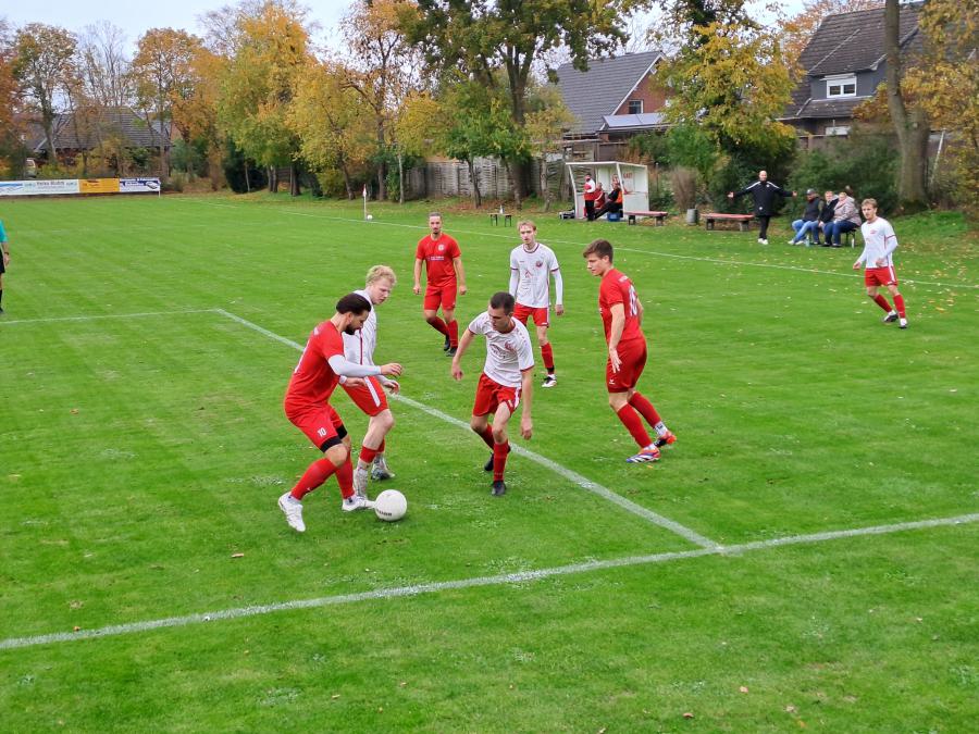 Die Serie der sieglosen Spiele konnte auch gegen den Tabellenführer nicht unterbrochen werden. Dabei war die Messe bereits nach 8 Minuten gelesen, denn durch zwei frühe Gegentore lag unsere Erste schnell in Rückstand. Dabei begannen sie zunächst recht druckvoll, doch mit seinem ersten Torabschluss ging der Gegner in Führung. Ole Lehmkuhl spielt zu Vincent Ahrmann und dessen Flachschuss ging am langen Pfosten ins Netz. Nur zwei Minuten später spielte Dennis Schröder einen genauen Pass zu Henning Nitzsche, der aus 16m den Ball an Torwart Nathan Müller vorbei schob. Damit stand es bereits 0:2. In der SFL-Defensive machte sich das Fehlen von Tim Göken stark bemerkbar (war im letzten Spiel wegen Meckerns mit gelb-rot vom Platz geflogen). Die Litteler steckten aber nicht auf, spielten weiter in Richtung Gästetor. Allerdings fehlte die Durchschlagskraft in der Offensive. Mitte der Halbzeit stellte ein Zuschauer richtig fest:“Die Wildeshauser sind zweimal über die Mittellinie gekommen und führen mit 2 Toren.“ Die Gästespieler gingen in etlichen Situationen kräftig zur Sache. So musste bereits nach einer Viertelstunde Felix Jäger verletzt raus und er wurde durch Lennard Boning ersetzt. In der 38.Minute schlugen die Gäste wieder zu. Bei einem Freistoß von Nico Krumdiek stimmte die Zuordnung in der Abwehr nicht und mit einem Flugkopfball traf Peter Schlüter zum 0:3. Die beste Gelegenheit für den SFL hatte kurz vorm Halbzeitpfiff von Schiedsrichter Frank Dobroschke (Delmenhorst) Felix Kiewitt, doch er traf den Ball nicht richtig.