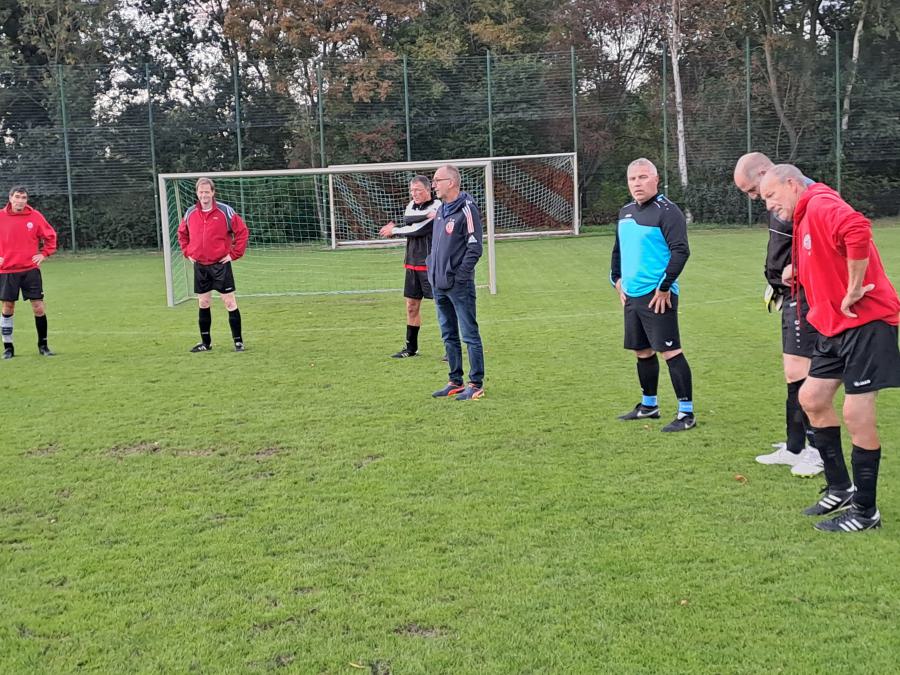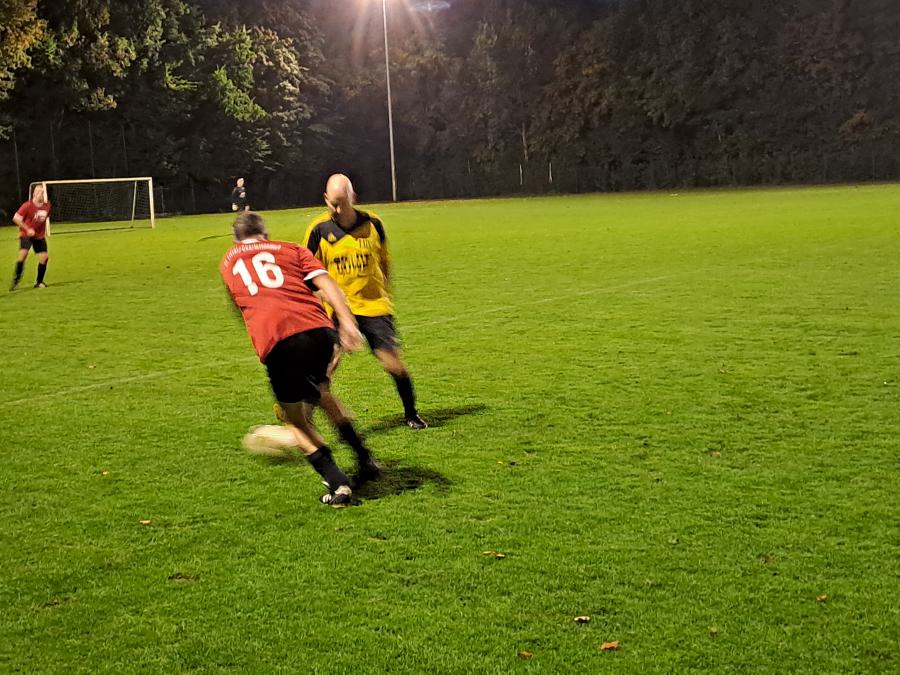 Die zweite Halbzeit verlief ähnlich ansehnlich und interessant wie die 1.Hz. Chancen gab es auf beiden Seiten, aber auch ein stabiles Abwehrverhalten und ein gefälliges Kombinationsspiel im Mittelfeld. Mail Schwarzer verstolperte in aussichtsreicher Position, nachdem der Keeper einen Schuss von Stefan Köhler nur nach vorne abklatschen konnte (33.). Einen Fristoß von Holger Muhle blockte die Mauer des FCO (38.). In dieser Phase war die Heimmannschaft leicht spielbestimmend. Der ausgewechselte J.G. kommentierte: „Die haben uns unterschätzt“. Das war m.E. nicht der Fall, wir spielten nur so gut wie lange nicht mehr. Und die Mühe wurde in der 40.Minute belohnt. Maik Schwarzer setzte Stephan Köhler ein, der mit der Pike ins Torwarteck den Führungstreffer erzielte. Ohmsted blieb aber ihrerseits immer gefährlich. So musste Maik Schwarzer im Gewühl auf der Linie klären, vorher wurde der auf links durchstürmende Angreifer nicht gestoppt (44.). Kurz danach strich ein Schuss der Oldenburger nur knapp am Tor vorbei. Jetzt waren die Gäste nach der Druckphase des SFL befreiter, erspielten sich einige gute Gelegenheiten. Aber die Abwehr / Defensive stand meist sicher und dann war da auch noch der sichere Torwart Ingo Otten. Das 2:0 hatte Holger Siemer nach Zuspiel von Holger Muhle auf dem Fuß. Er traf allerdings in zentraler Position den Ball nicht richtig. Fast mit dem Schlusspfiff von SR Jürgen Schmidt hatte Rafal Cywinski noch Pech, als er alleine auf den Torwart zustürmte, dem aber den Ball in die Arme schoss.