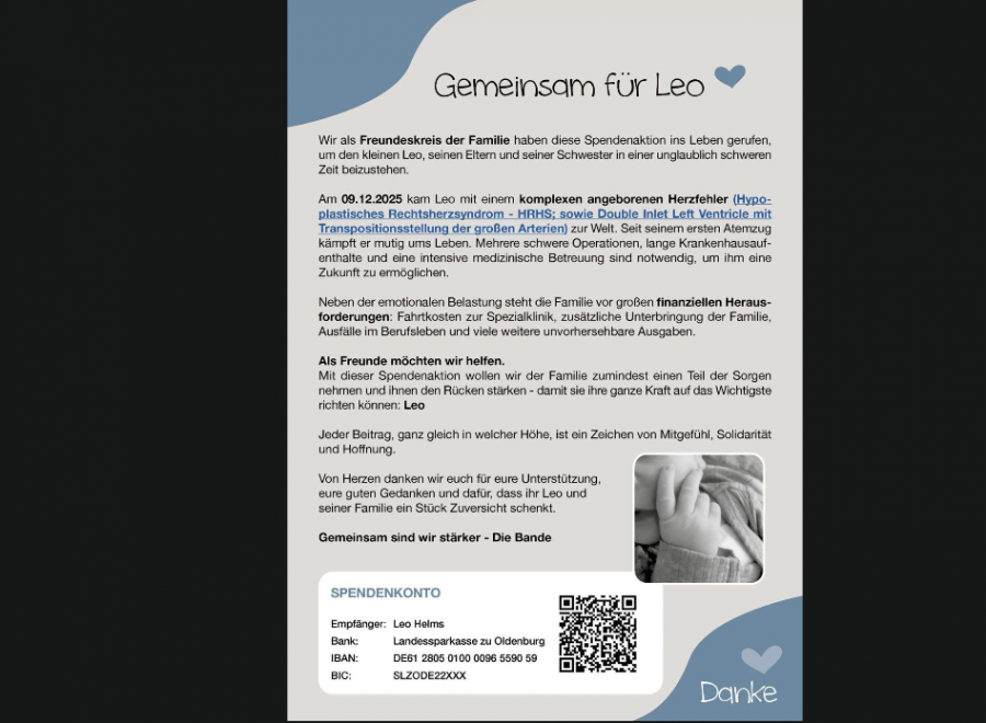 Spendenaufruf für Leo Helms, Sohn von Dennis Helms, unserem Spieler in der zwieten Herren.