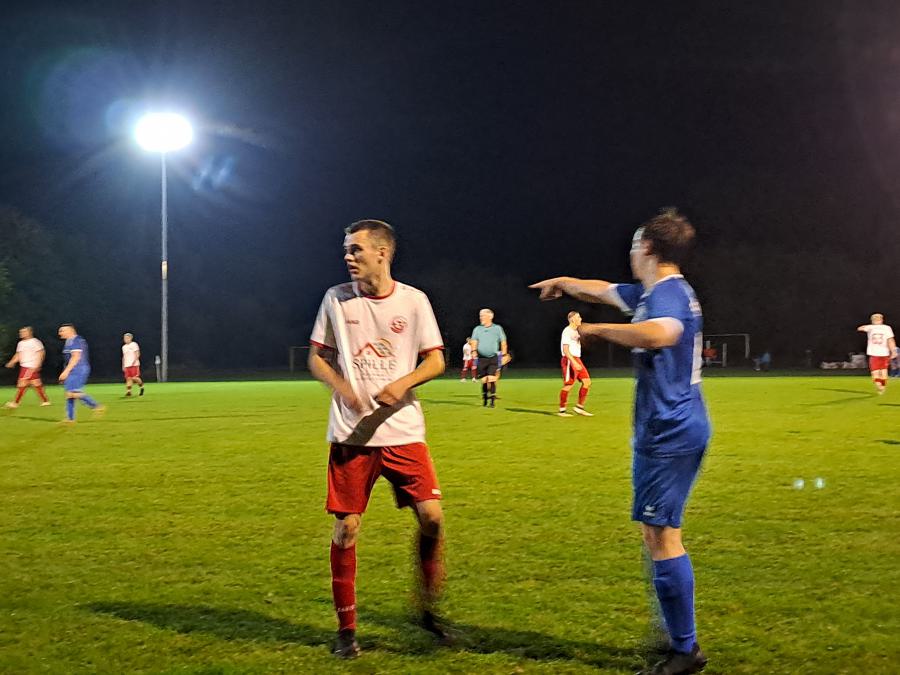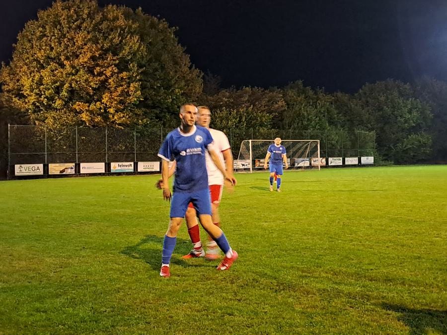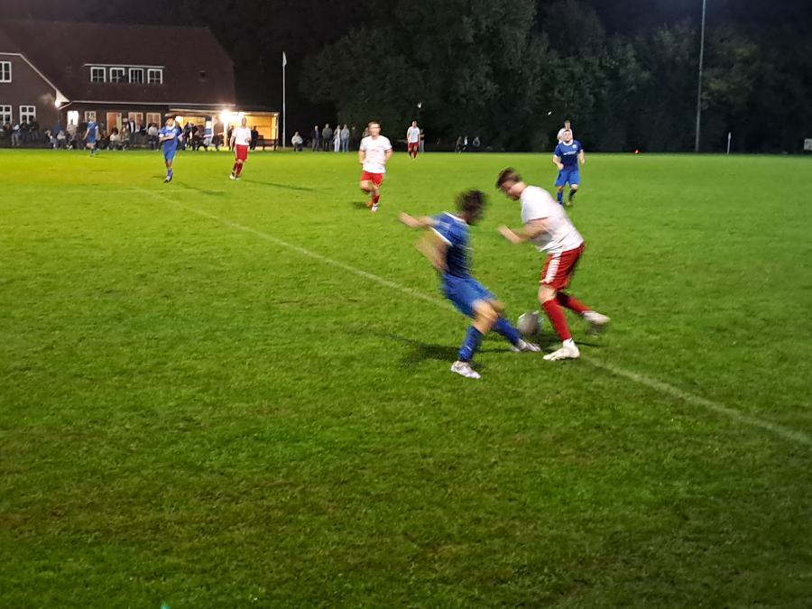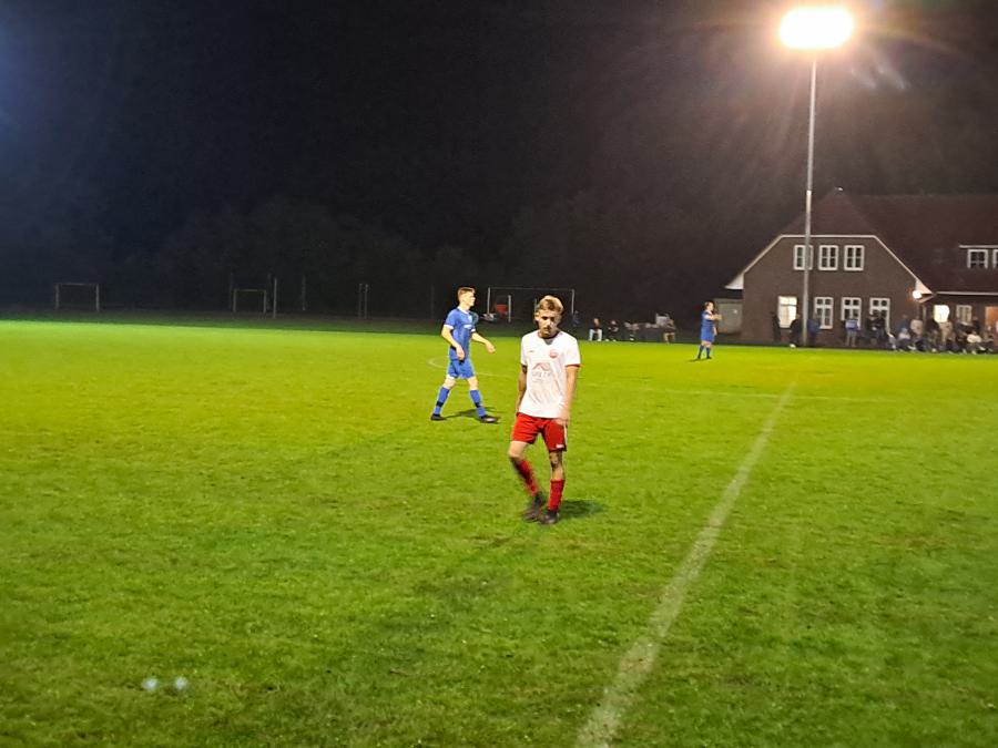 Stark ersatzgeschwächt (so fehlten u.a. Lutz, Marek, Niklas, Chris) trat unsere I. in Dötlingen an. Selbst Trainer Chris von Behren hatte sich ein Trikot übergestreift. Zunächst ging das Spielgeschehen hin und her, beide Teams mit hohem Tempo und viel Geschehen im Mittelfeld. Zudem versuchten es die Litteler häufig mit langen Bällen aus der Abwehr auf die Angreifer Raik Schürmann, Lennard Boning und Felix Jäger. Die ersteGroßchance besass in der 15.Minute der TVD, doch der seit Wochen in überragender Form spielende Noah Ledosquet klärte im letzten Moment. Der letztendlich spielentscheidende Fehler passierte in der 20.Minute. Die Flanke von rechts wurde nicht verhindert und vorm Tor stand Joost Hoffrogge völlig frei und hatte keine Mühe, den Ball aus 5m über die Torlinie zu drücken. Der SFL versuchte es dann weiter mit langen Bällen aus dem Mittelfeld heraus vors Tor – aber ohne Erfolg. Die bis dahin beste Ausgleichschance vergab nach einer halben Stunde Raik Schürmann, der nach einem Freistoß von Maik Schröder den Ball aus kürzester Entfernung noch über das Tor schoss. Der Trainer des TVD, Marco Büsing, forderte seine Spieler auf:“Die Abstände stimmen nicht – enger!“ In der 32.Minute hatte der Gast wieder einen Freistoß, Maik Schröder brachte ihn vors Tor, aber keiner der Angreifer kan dran. „Die stehen falsch“, so der Kommentar von TR Chris von Behren. Littel hatte etwas mehr Ballbesitz, die Heimmannschaft stand aber defensiv stabil, während beim Gast Noah Ledosquet durch seine Zweikampfstärke etliches klärte. Andrej Kari musste sich von Schiedsrichter Jörn Peters (Delmenhorster TB) nach einem verlorenen Zweikampf den Ausspruch „Hör auf zu heulen!“ gefallen lassen. Die Partie war in der 1.Halbzeit zwar umkämpft aber nicht unfair. Die letzte Möglichkeit vorm Halbzeitpfiff vergab Maik Schröder nach einem langen Freistoß von Tim Göken, als er den Ball nicht unter Kontrolle bekam.